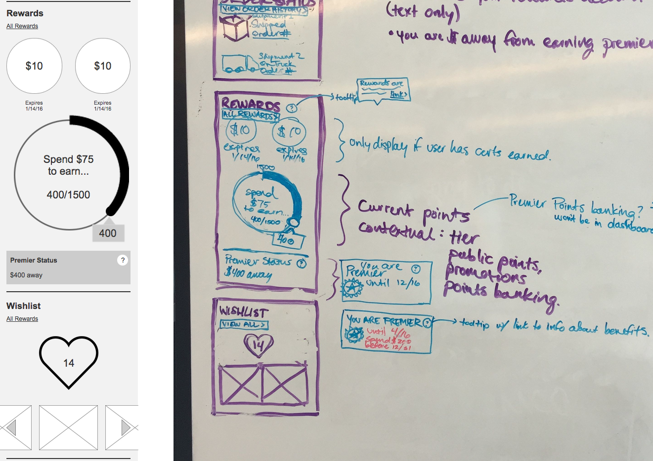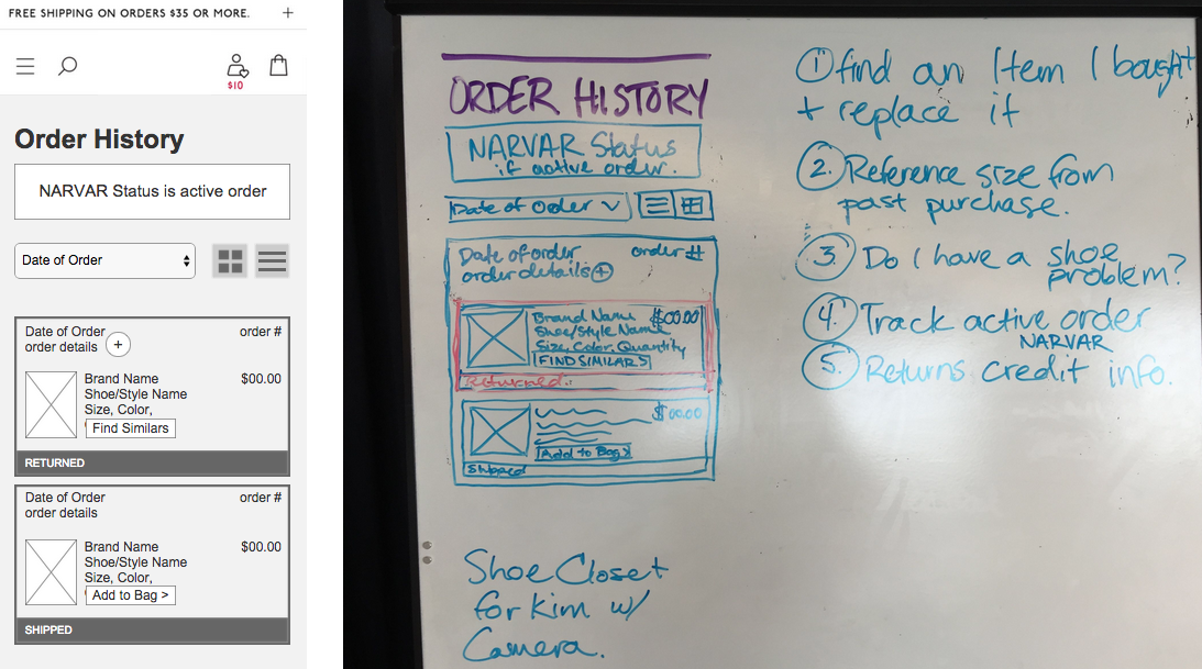 During my time working for a large shoe retailer I was tasked to create wireframes, in Axure, based on a white-boarding session. The white-boarding session was held to hash out the details of the retailer's mobile shopping experience.
